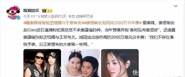 谢贤自己讲过分手这件事。他说不想耽误对方。他觉得自己的年纪摆在那里。结婚生孩子这些事,他给不了对方想要的。那就分开好了。这是他的说法。分开以后,外面的说法就多了。传得最广的那个说法,是说CoCo拿了一大笔钱。数字被传得有鼻子有眼。好像所有人都亲眼看见了那张支票。感情这种事,最后总得有个说法。要么是感情淡了,要么是现实条件不允许。谢贤选了后面那种说法。他把责任揽到自己这边。年纪,承诺,这些他给不了的东西,成了分开的理由。这理由听起来挺体面。至少比互相指责要体面。体面是需要成本的。所以就有了后面那些关于钱的传闻。传闻未必是真相。但传闻一定满足了某种想象。人们总是愿意相信,一段关系的结束必须有个清晰的价码。好像这样就能把整件事算清楚了。感情是算不清楚的。能算清楚的,大概只有数字。于是数字就成了故事的句号。一个大家都能看懂的句号。